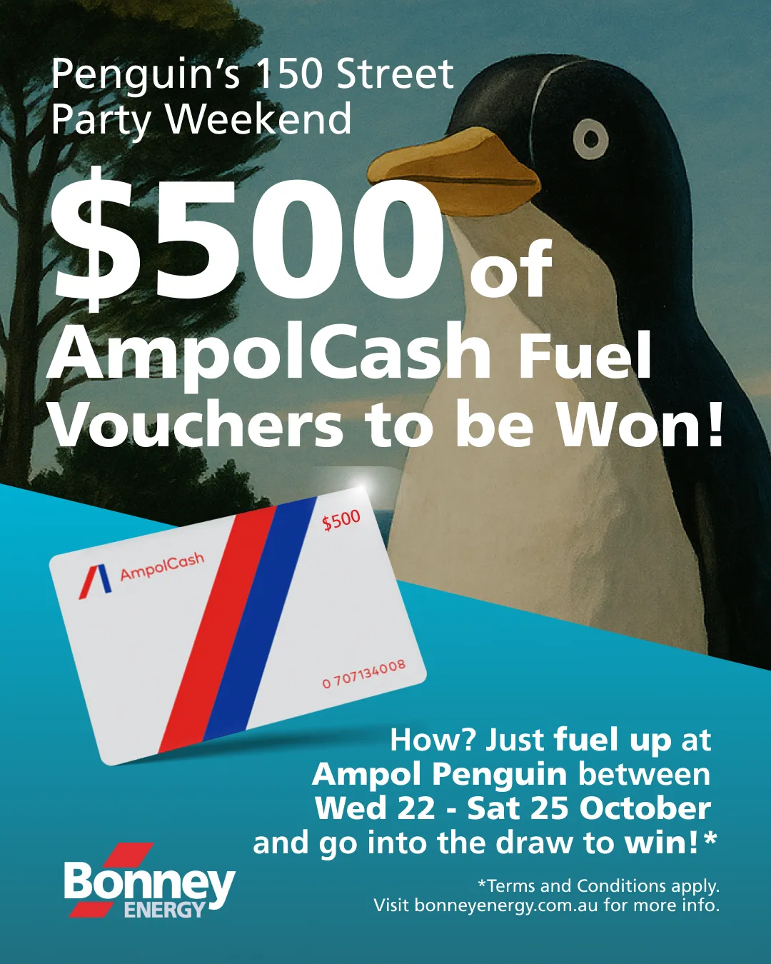 To mark the Penguin 150 Street Party, Bonney Energy is giving locals the chance to win $500 worth of AmpolCash fuel vouchers!