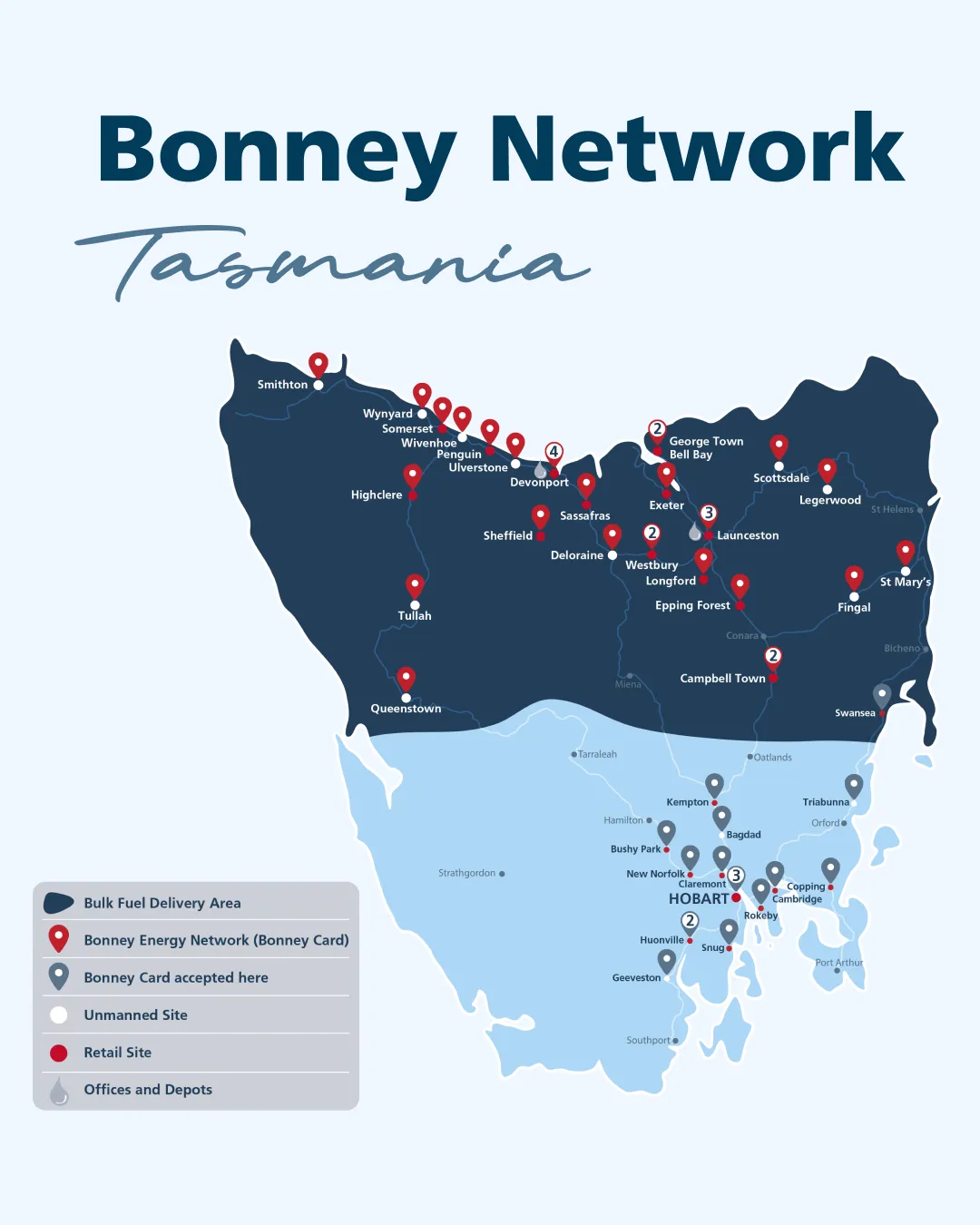 Did you know your Bonney Card can be used at all affiliated Bennett’s sites in Southern Tasmania? This partnership significantly expands where you can refuel, making the Bonney Network one of the largest fuel networks in Tasmania.