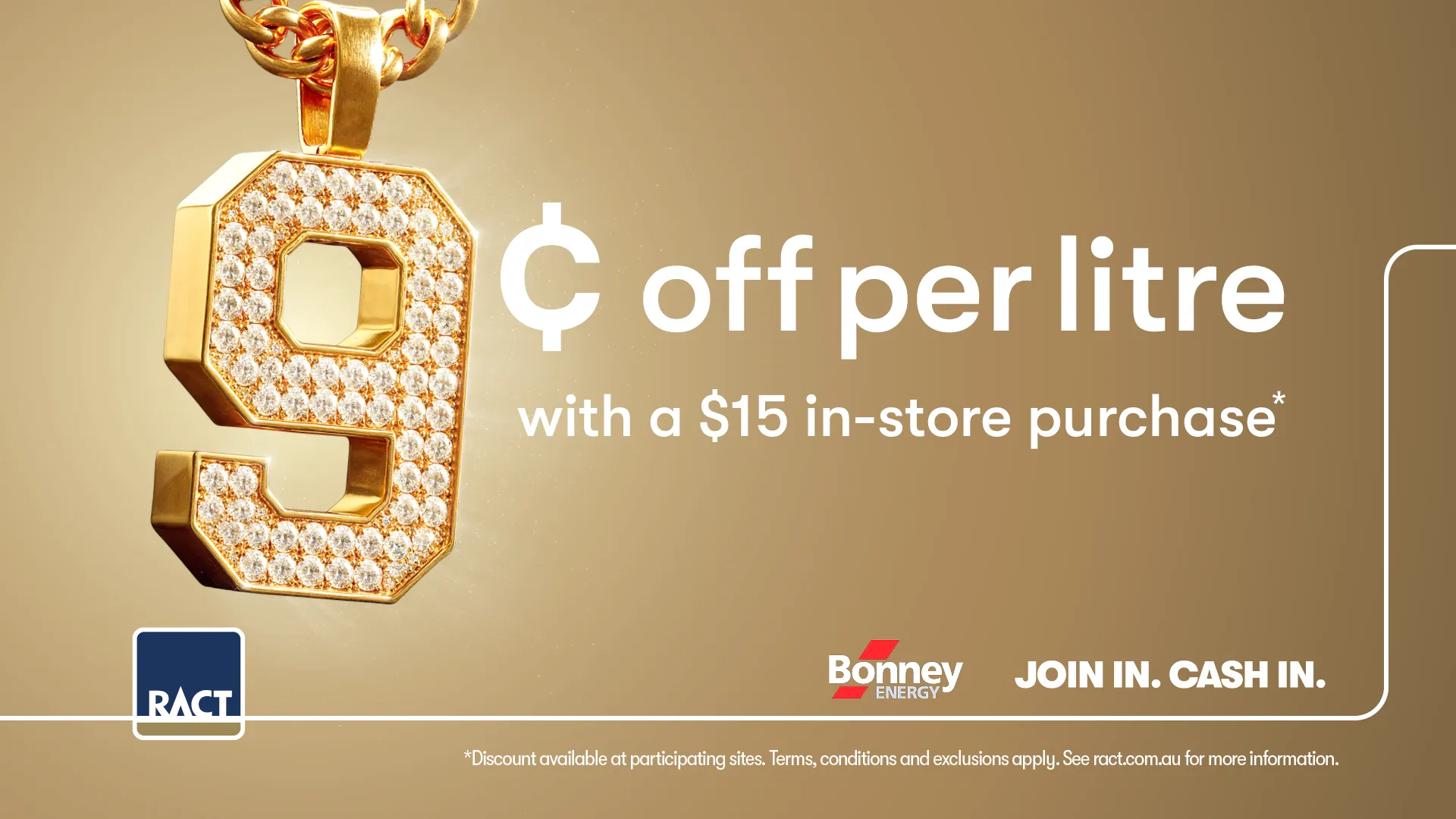 Simply fill up at a participating Bonney Energy site, show your physical RACT membership card, digital card in your RACT Online Account or digital card in the RACT Fuel Saver app when paying for your fuel. Members can fill up as many times as they want, with a limit of 150 litres in a single transaction. RACT Members can access 9 cents off every litre when making an eligible $15 in-store purchase at one of our participating sites. Terms, conditions and exclusions apply.